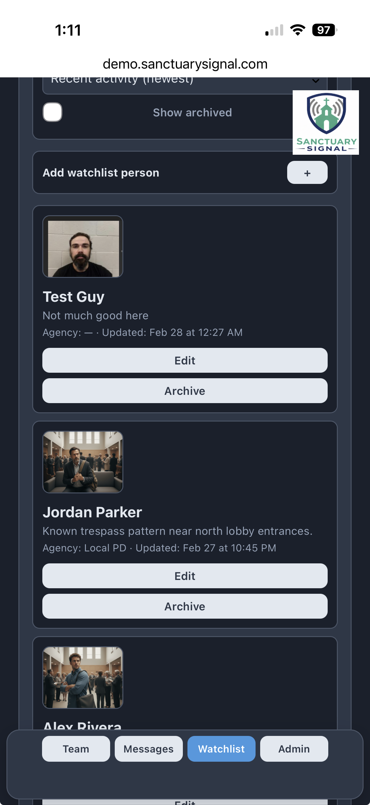Sanctuary Signal enforces a structured watchlist workflow so access and updates are governed by role and leadership oversight.